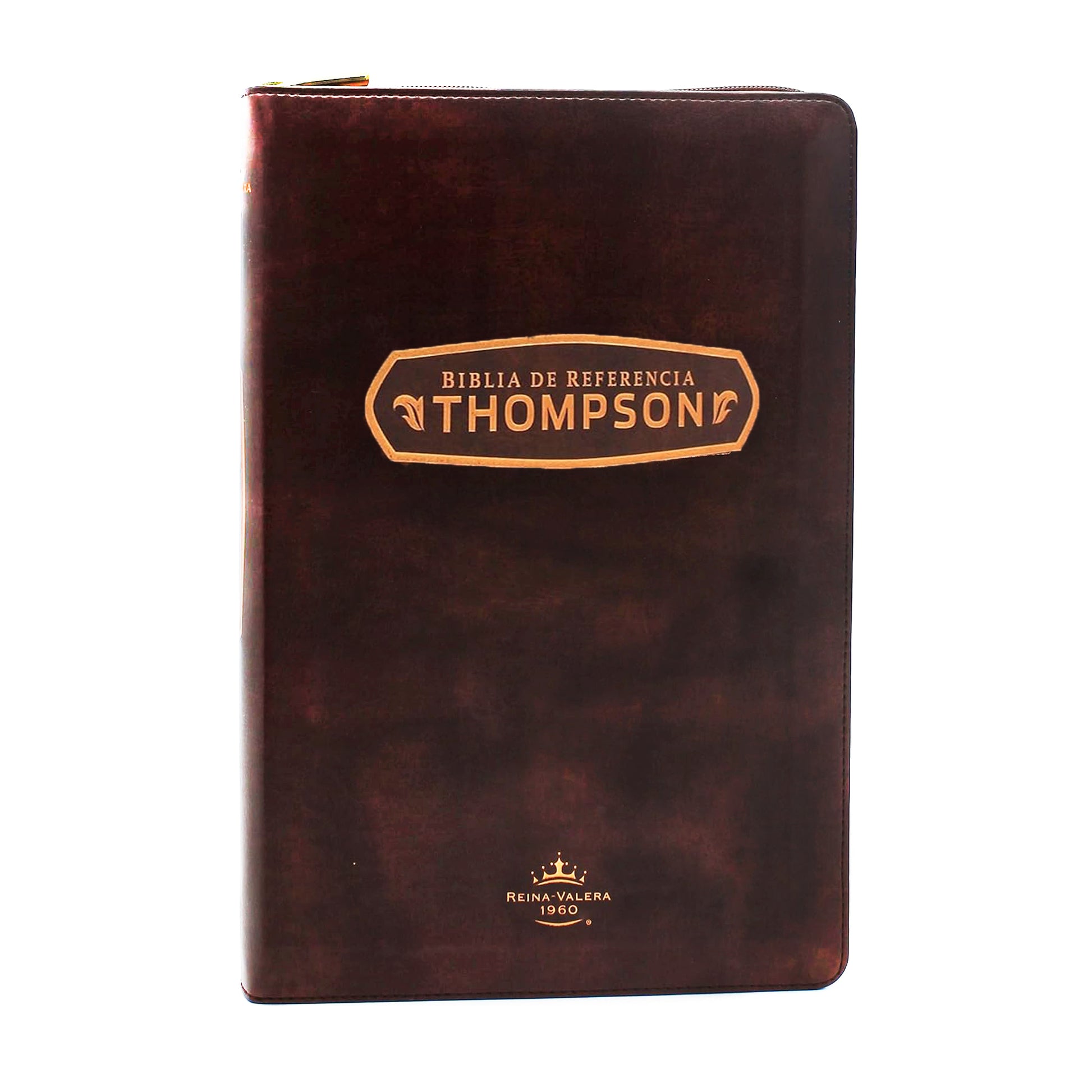Biblia Reina Valera 1960 de Estudio Thompson con Cierre Indice en color caoba y estuche de proteccion